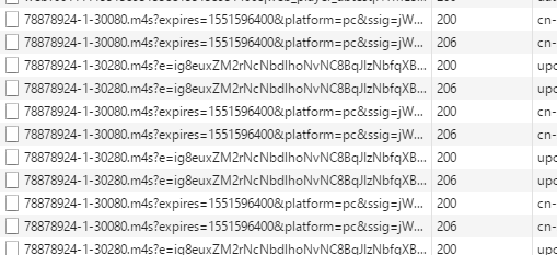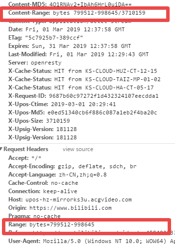 使用HTML5播放的时候,浏览器不断的发了这么多请求(OPTIONS/GET + 视频源/音频源),请求的地址基本上是一样的,只是指向的文件的不同部分,这点从请求和回复的头部可以看出来。